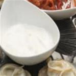 Deegwaren gevuld met vlees en huisgemaakte saus die is gemaakt van gebakken wortelen en uien in tomatenpuree.